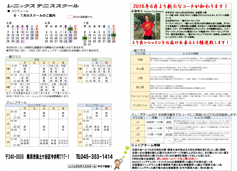 横浜市保土ヶ谷区のレニックステニススクールのお知らせ