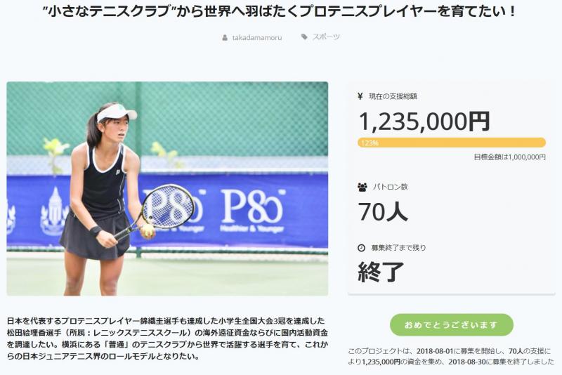 「テニスガーデンレニックスからプロテニス選手を!」という思いに、ご支援やSNS等でシェアして頂ければ幸いです。